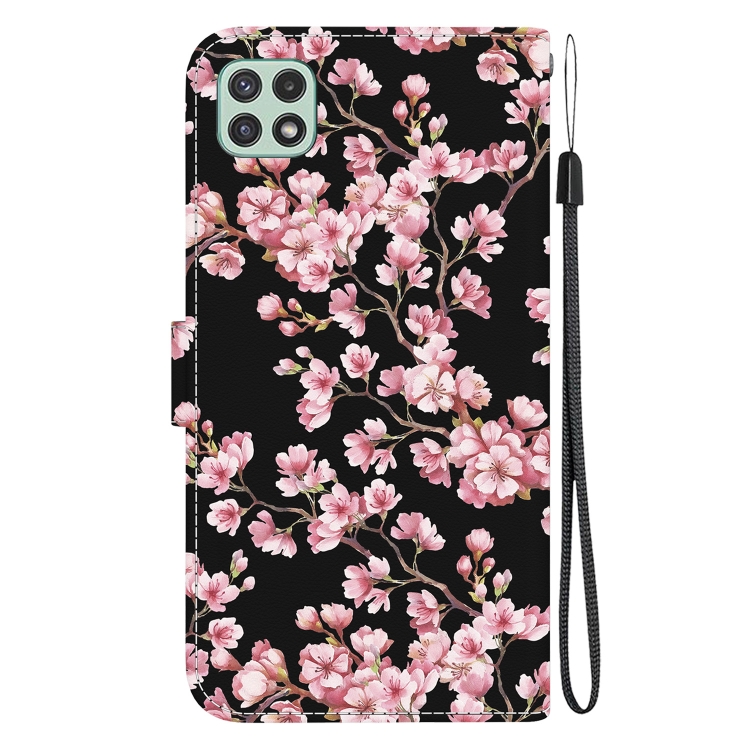 Funda para Teléfono Samsung Galaxy A22 5G Cuero con Dibujo Coloreado Textura de Cristal (Flor de Ciruelo)