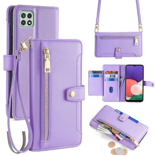 Funda para Samsung Galaxy A22 5G Lite Cuero Billetera Cremallera Cuerpo Cruzado Textura Oveja (Púrpura)