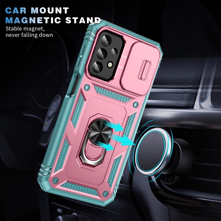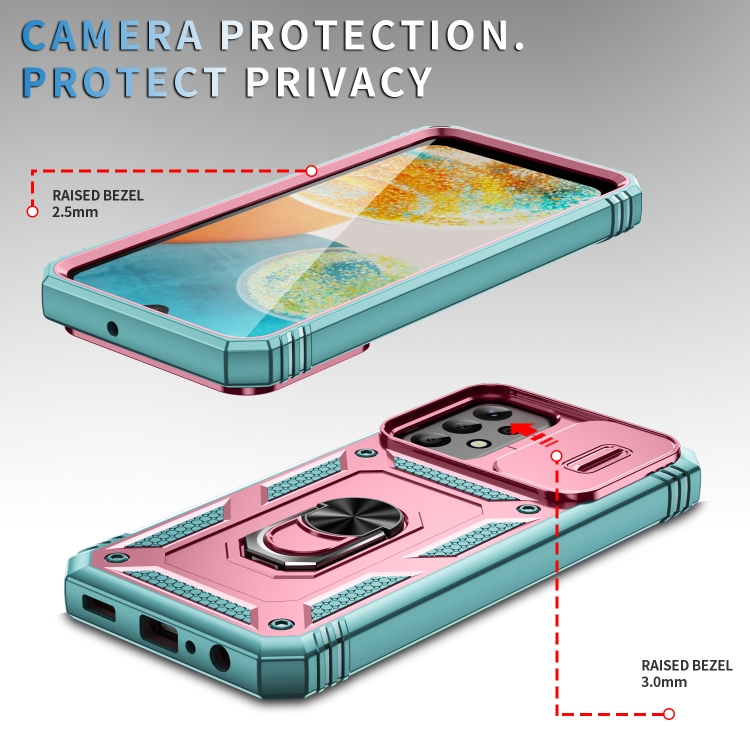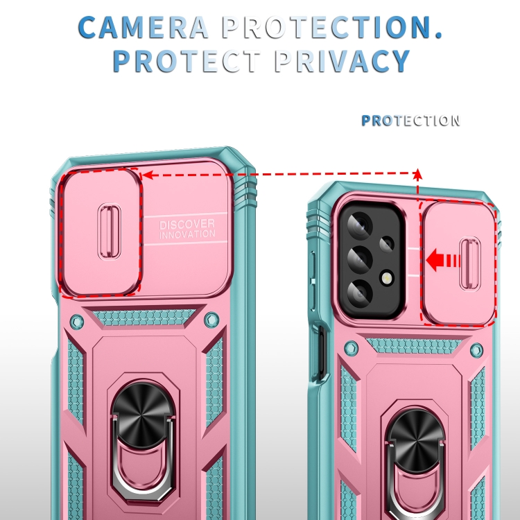 Funda para Teléfono Samsung Galaxy A23 4G / 5G Sliding Camshield TPU + PC con Soporte (Rosa + Verde)