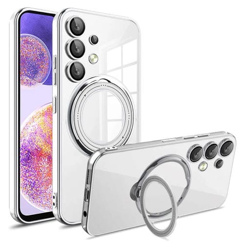Estuche para teléfono Samsung Galaxy A23 4G y A23 5G Galvanoplastia Magsafe Soporte rotación 360 grados (Plata)