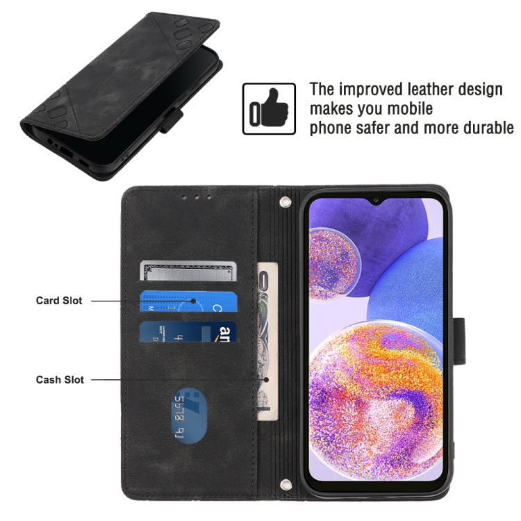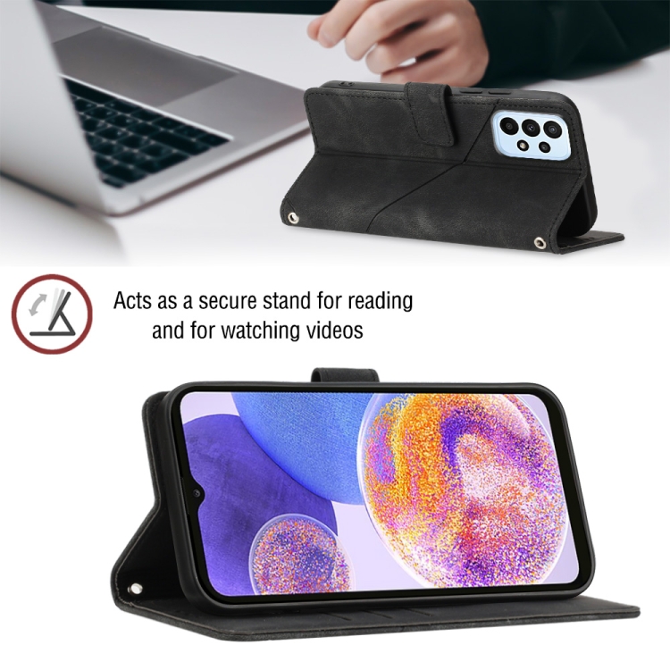 Estuche para Teléfono Samsung Galaxy A23 4G F23 5G Cuero En Relieve con Tacto de Piel (Negro)