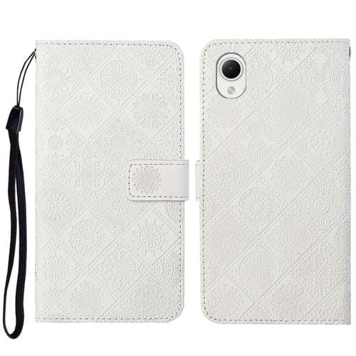 Estuche para Teléfono Samsung Galaxy A23E Cuero Patrón en Relieve Estilo Étnico (Blanco)