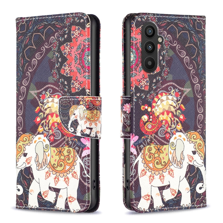 Para Samsung Galaxy A24 4G Caja de teléfono de cuero con dibujo coloreado (Elefante de flores)