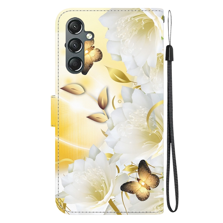 Funda de Cuero para Samsung Galaxy A24 4G con Dibujo Coloreado Textura de Cristal (Epiphyllum de Mariposa Dorada)