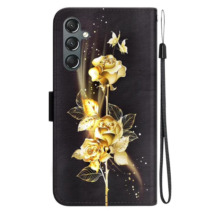 Funda para Teléfono Samsung Galaxy A24 4G Cuero Dibujo Coloreado Textura de Cristal (Mariposa Dorada Rosa)