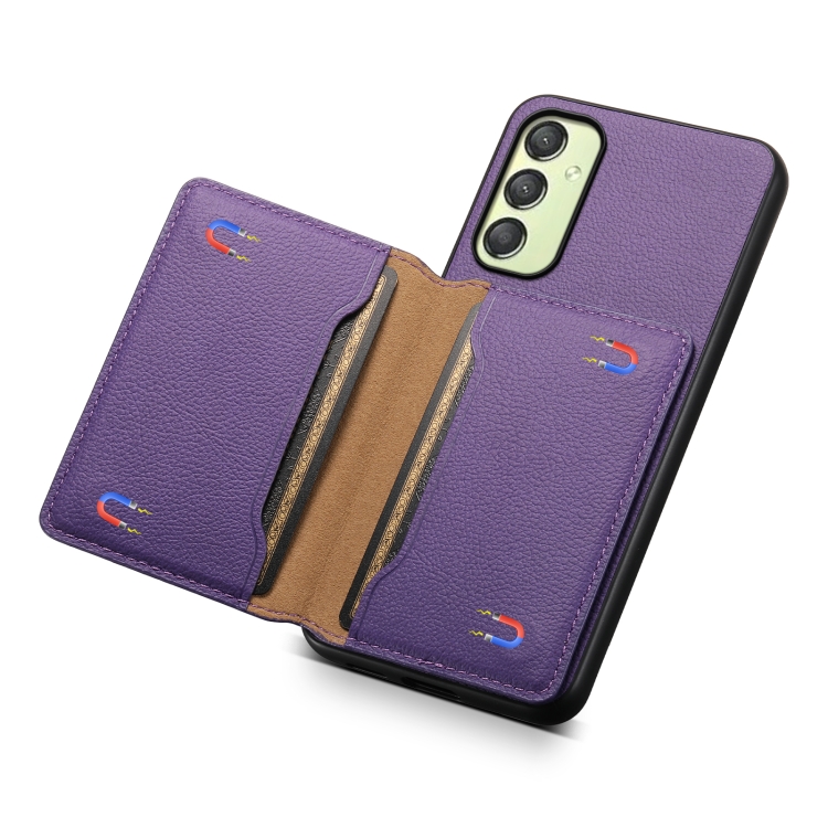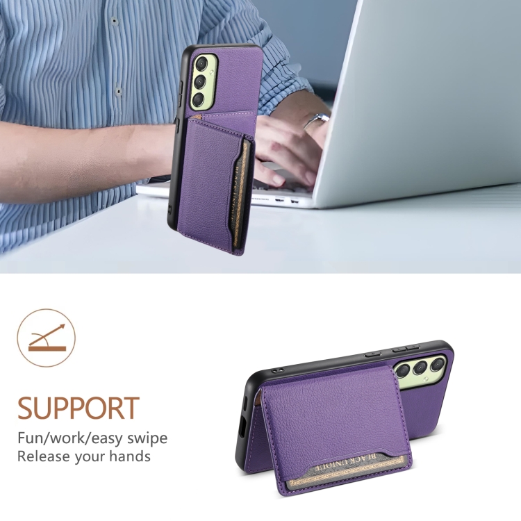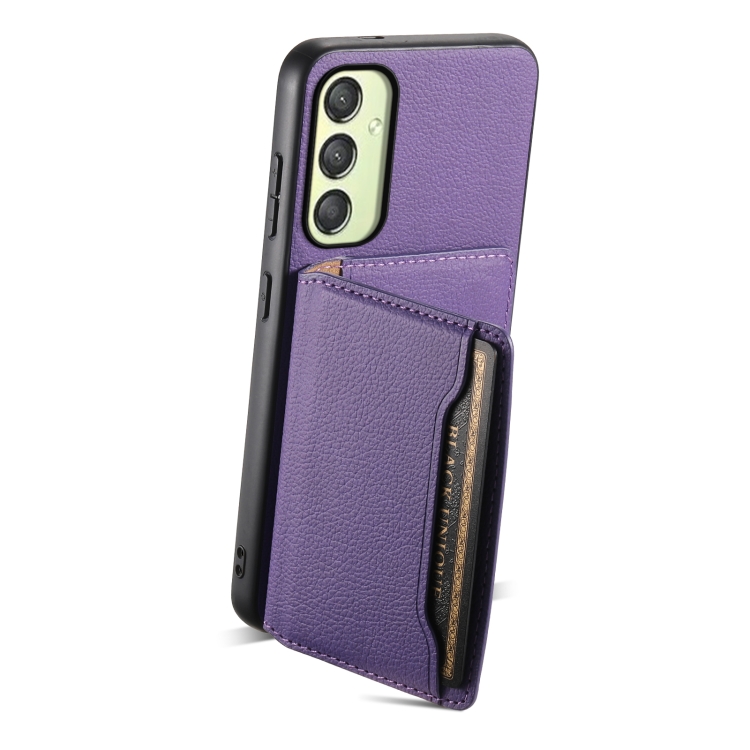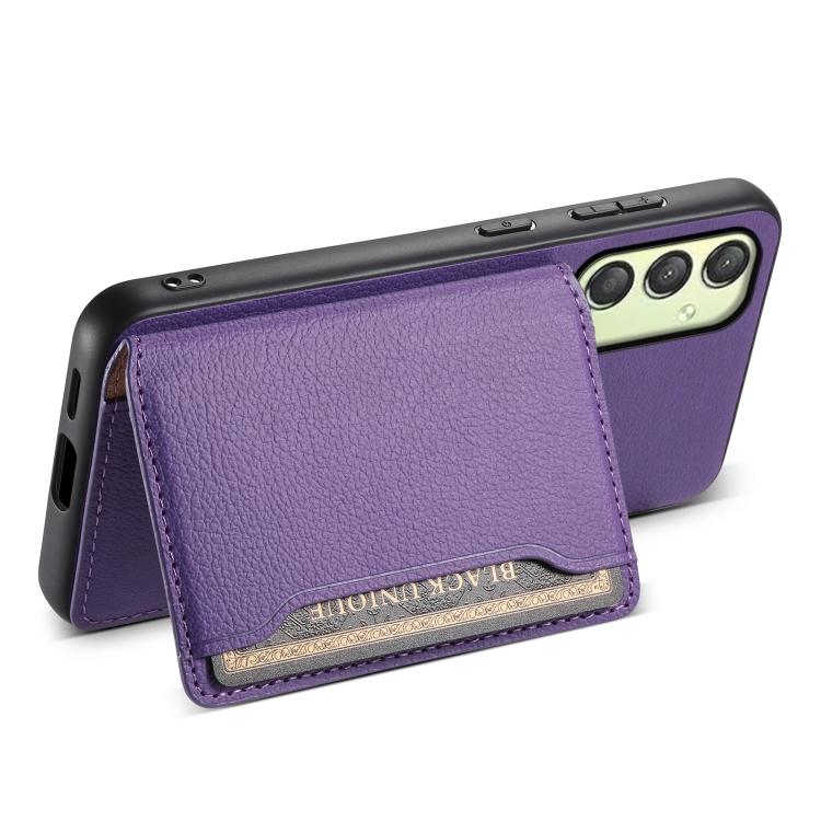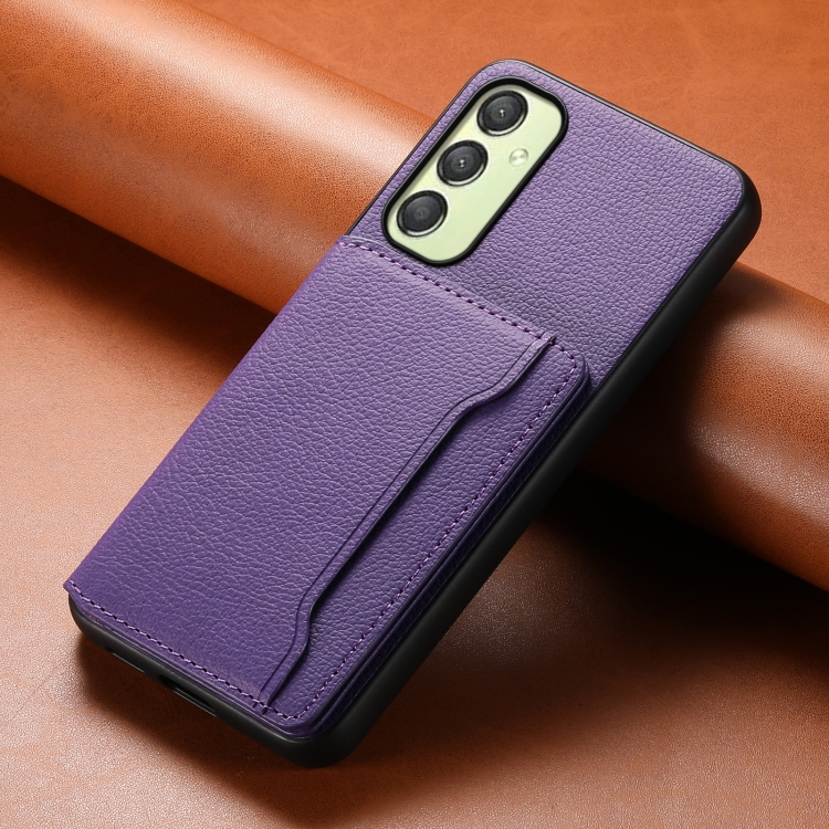 Funda para Teléfono Samsung Galaxy A25 Diseño Bolsa de Tarjeta Textura Becerro (Púrpura)