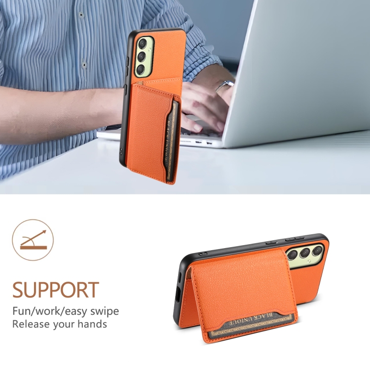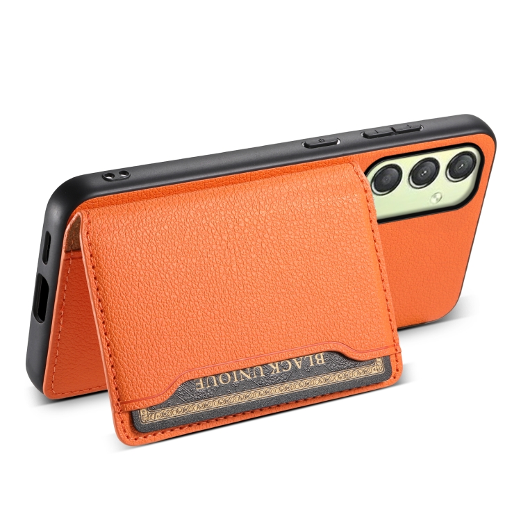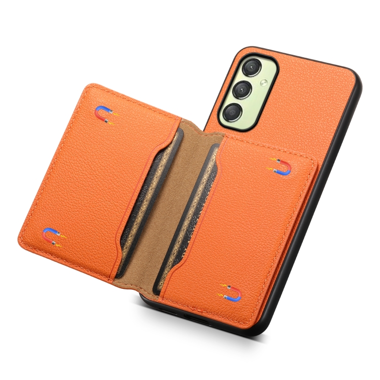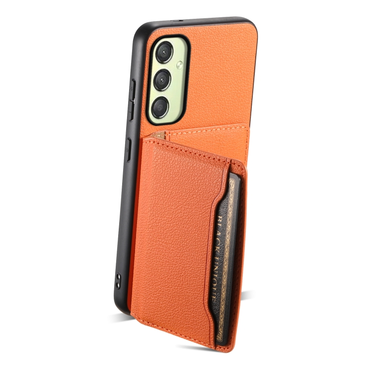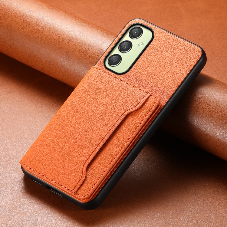 Funda para Teléfono Samsung Galaxy A25 Diseño Bolsa para Tarjetas Textura de Becerro (Naranja)
