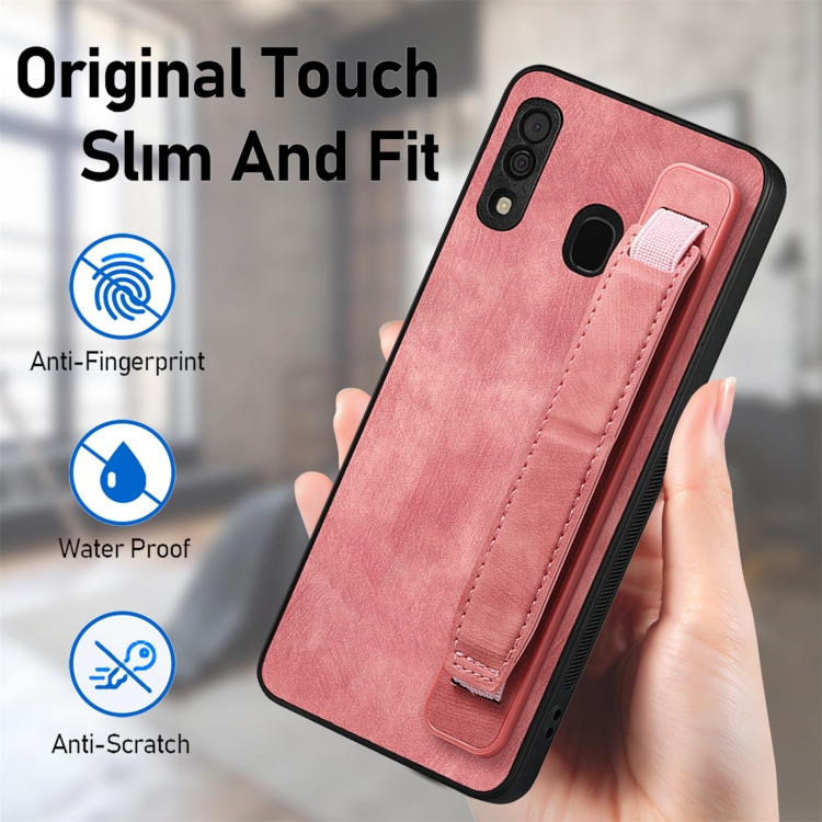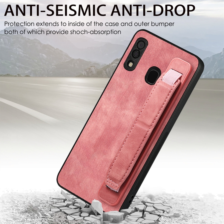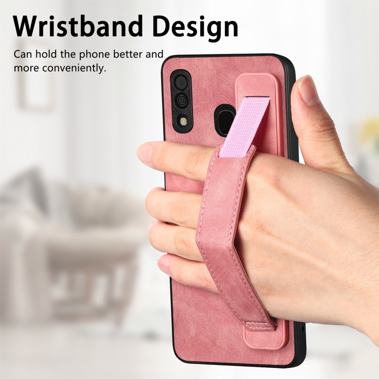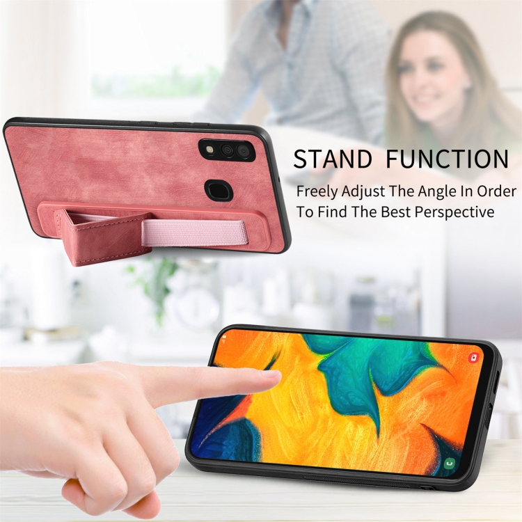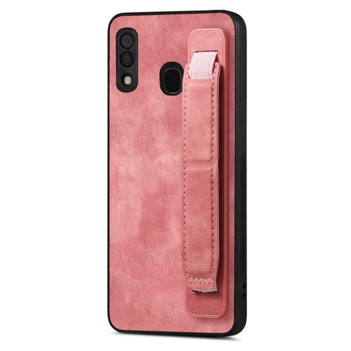 Funda Trasera para Samsung Galaxy A30 Cuero con Soporte para Pulsera Retro (Rosa)