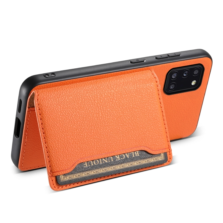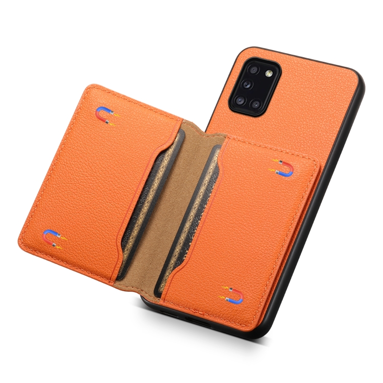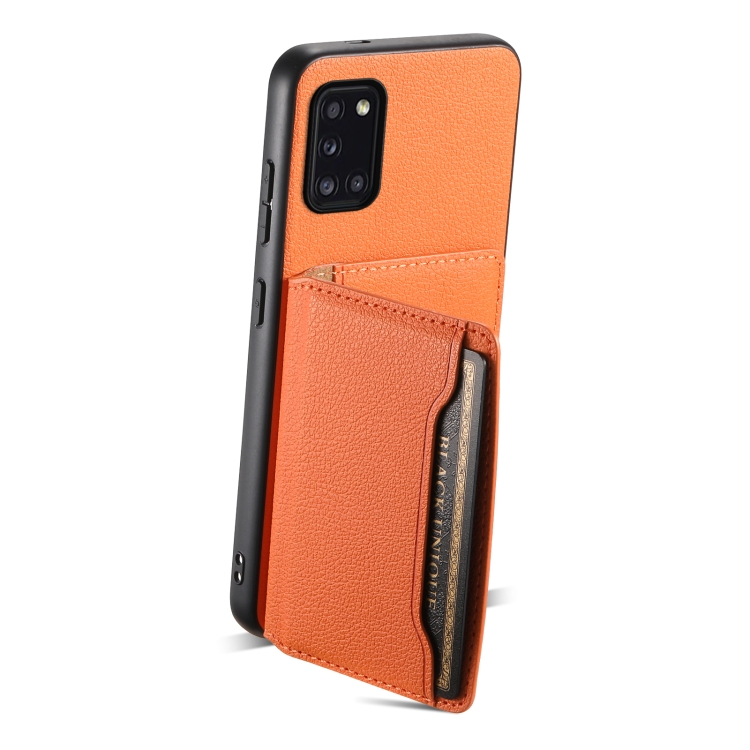Funda para Teléfono Samsung Galaxy A31 4G con Diseño de Bolsa para Tarjetas y Textura de Becerro (Naranja)