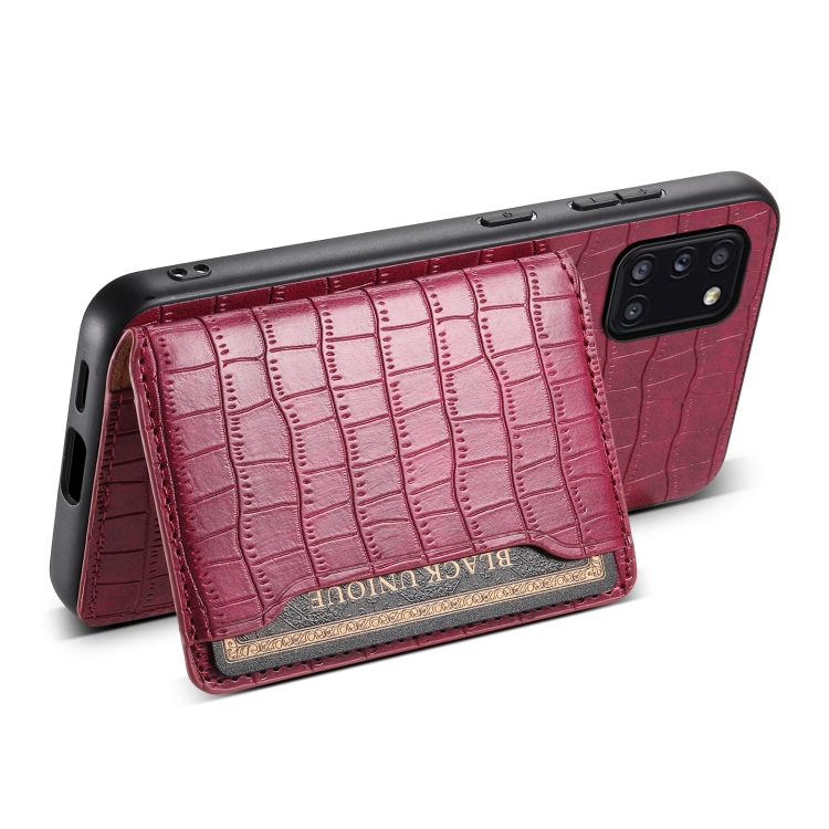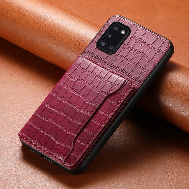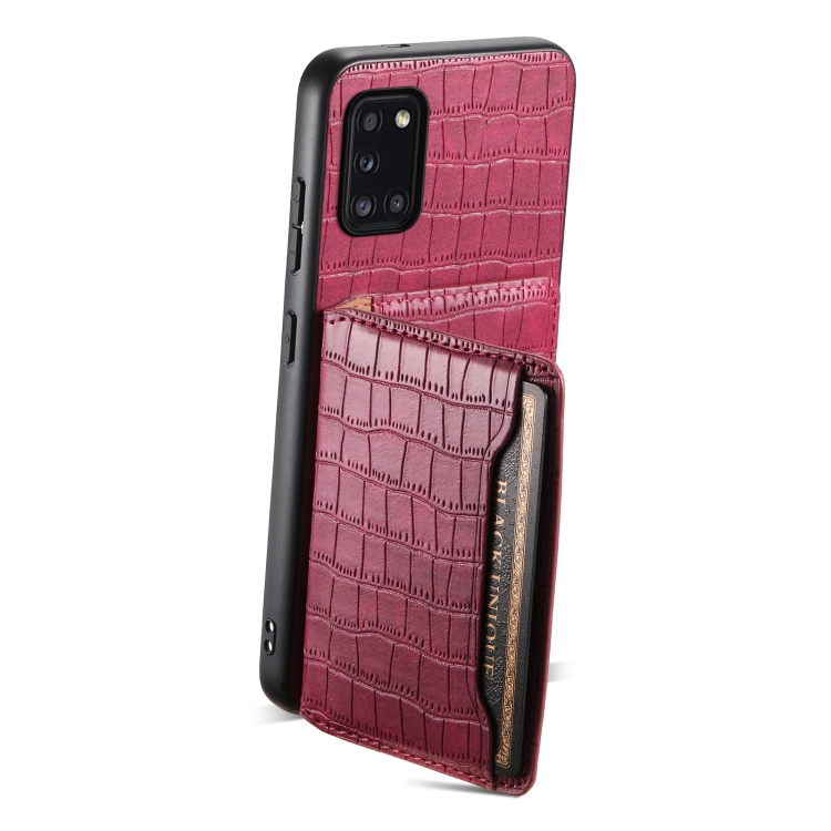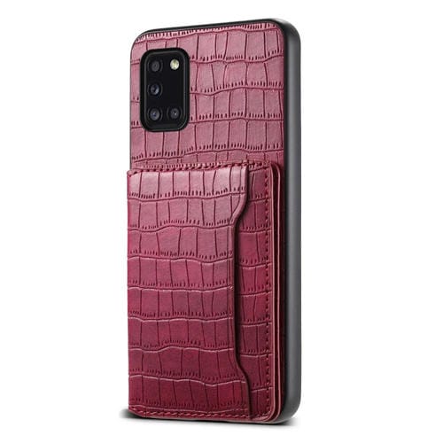 Funda para Teléfono Samsung Galaxy A31 4G con Diseño de Bolsa para Tarjetas y Textura de Cocodrilo (Rojo)