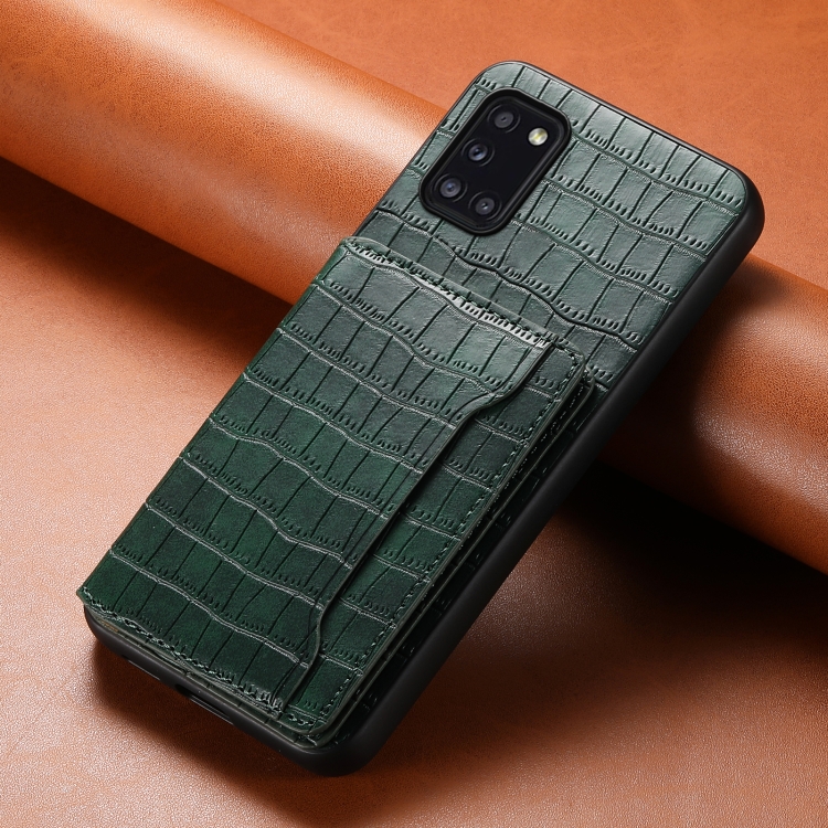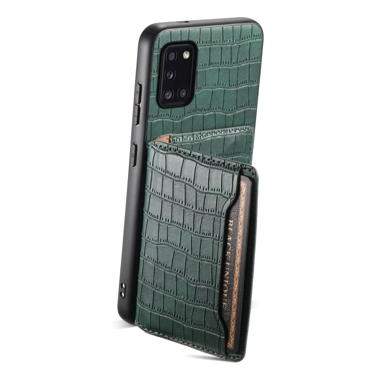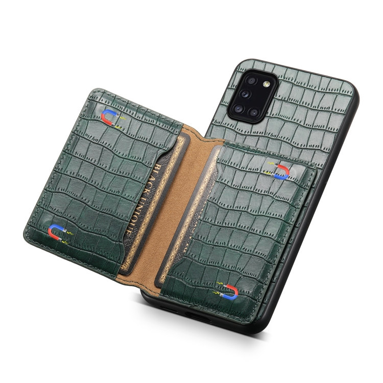 Funda para Teléfono Samsung Galaxy A31 4G Bolsa para Tarjetas Textura de Cocodrilo (Verde)