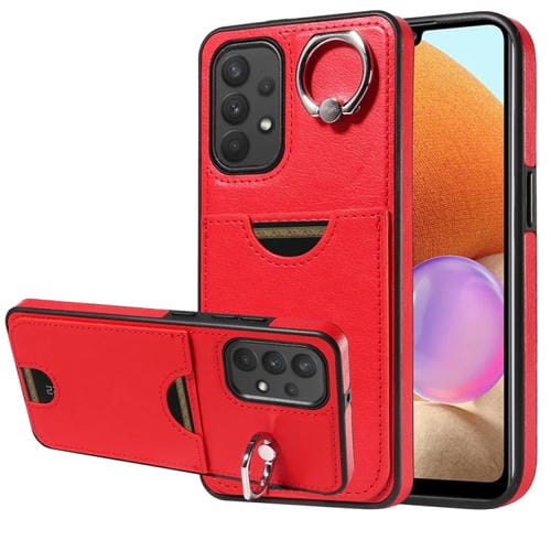 Funda para Teléfono Samsung Galaxy A32 4G con Soporte para Anillo y Ranura para Tarjeta (Rojo)