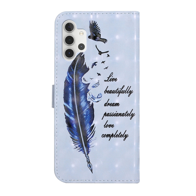 Funda para Teléfono Samsung Galaxy A32 4G Cuero Dibujo 3D Relieve al Óleo (Pluma Azul)