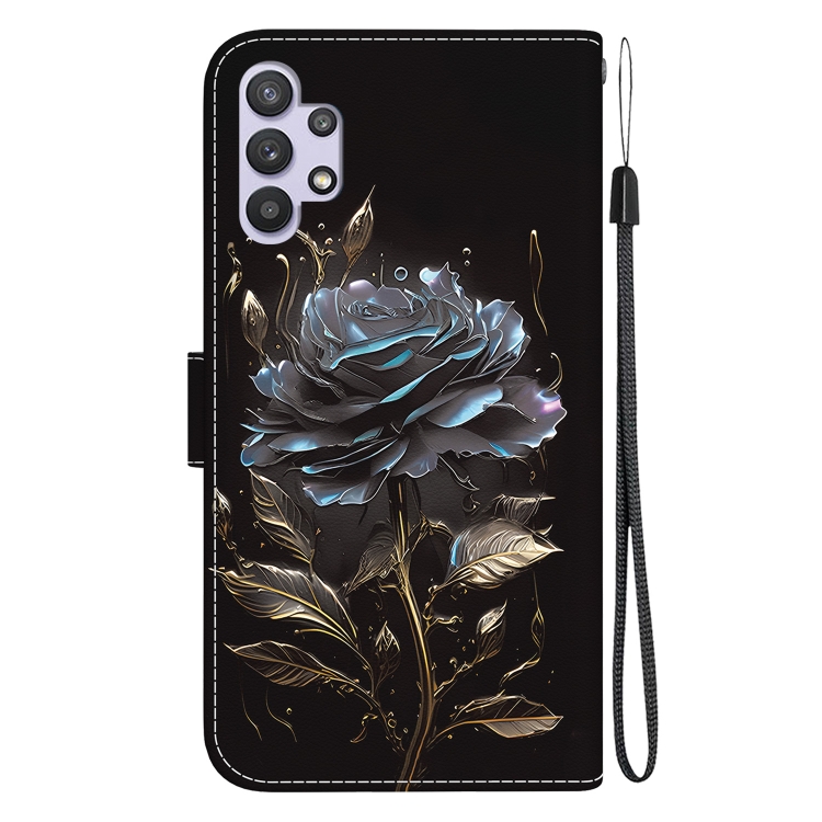 Funda para Teléfono Samsung Galaxy A32 4G Cuero Dibujo Coloreado Textura de Cristal (Rosa Negra)