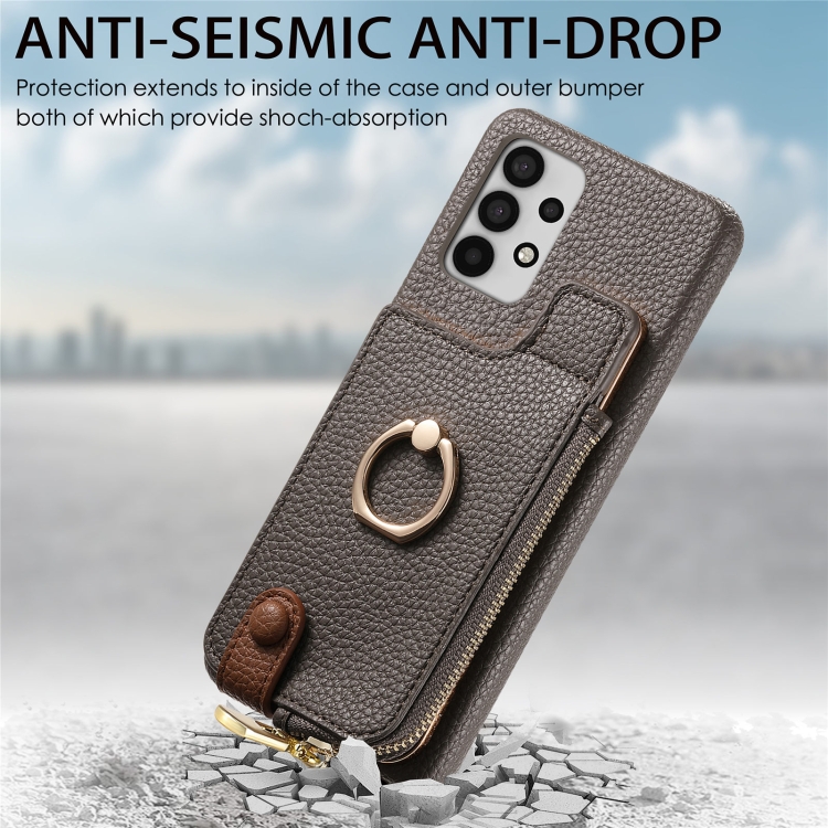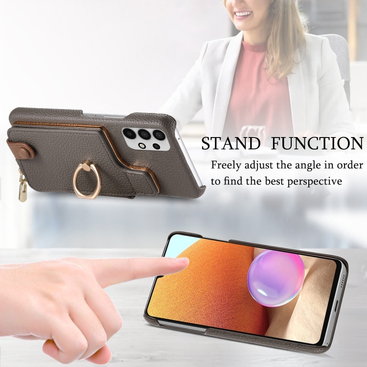 Funda para Samsung Galaxy A32 4G Litchi Leather Oil Edge Ring Zipper Wallet Back (Gris)