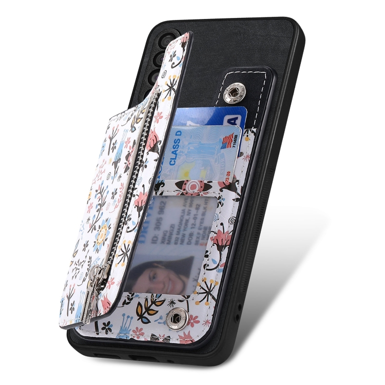 Estuche para Teléfono Samsung Galaxy A33 5G con Billetera con Cremallera Pintada Retro (Negro)