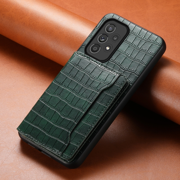 Funda para Teléfono Samsung Galaxy A33 5G Diseño Bolsa de Tarjeta Textura Cocodrilo (Verde)