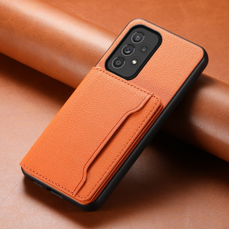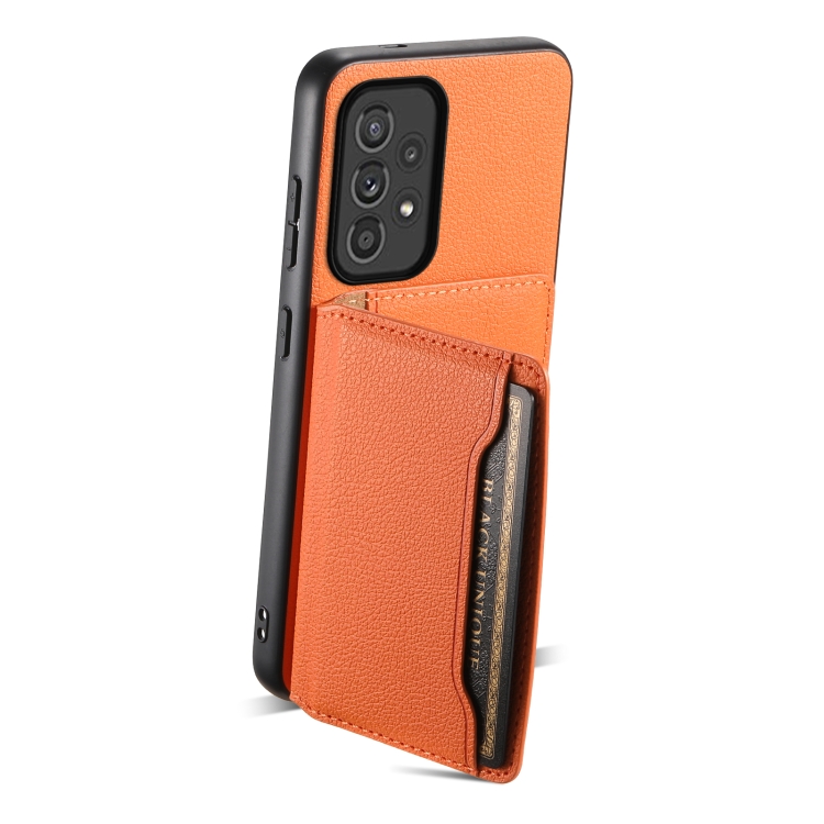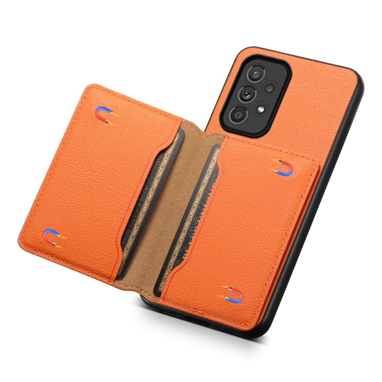 Funda para Teléfono Samsung Galaxy A33 5G Bolsa para Tarjetas Textura de Becerro (Naranja)