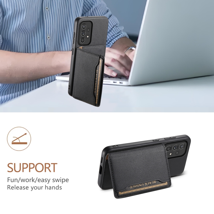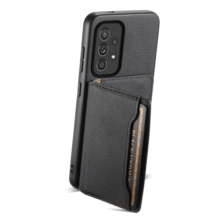 Funda para Teléfono Samsung Galaxy A33 5G con Diseño de Bolsa para Tarjetas Textura de Becerro (Negro)