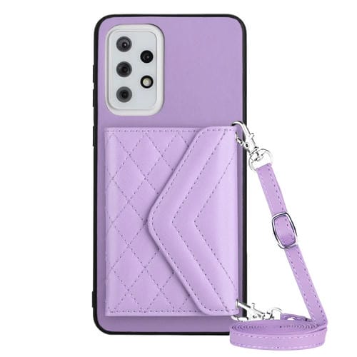 Funda para Teléfono Samsung Galaxy A33 5G con Bolsa para Tarjetas Rfid Textura Rómbica y Cordón Largo (Púrpura Claro)