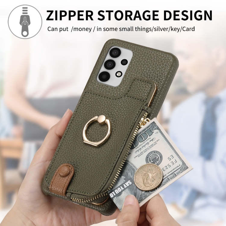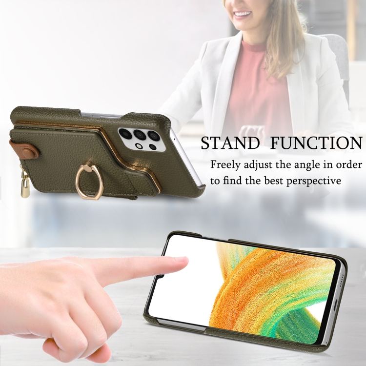 Funda para Samsung Galaxy A33 5G Litchi Leather Oil Edge Ring Zipper Wallet Back (Verde)