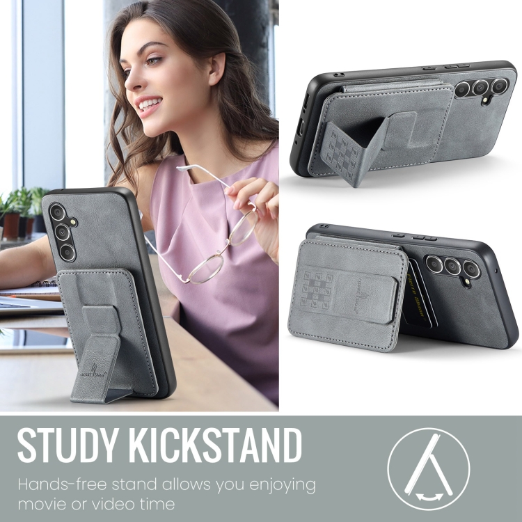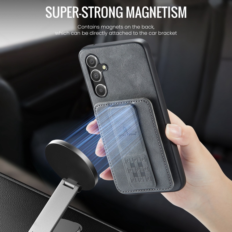Funda para teléfono Fierre Shann Oil Wax para Samsung Galaxy A34 5G con tarjetero de cuero de vaca (Gris)