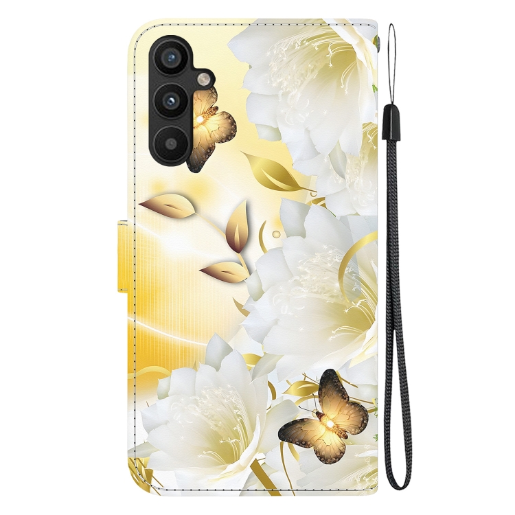 Funda de Cuero Samsung Galaxy A34 5G con Dibujo Coloreado y Textura de Cristal (Epiphyllum de Mariposa Dorada)