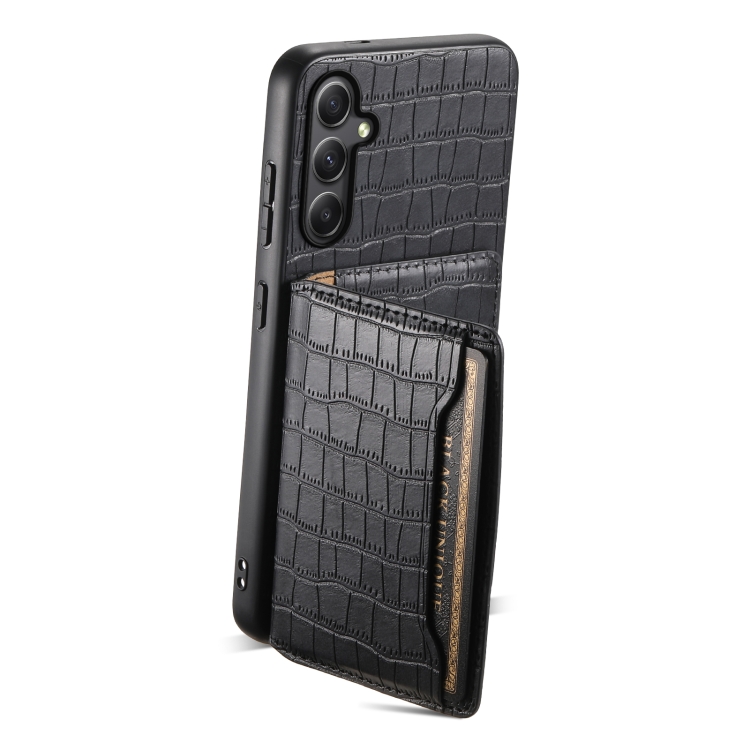 Funda para Teléfono Samsung Galaxy A34 5G Diseño Bolsa para Tarjetas Textura Cocodrilo (Negro)