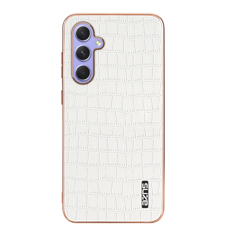 Estuche para Teléfono Samsung Galaxy A34 Azns Textura de Cocodrilo con Marco Galvanizado (Blanco)