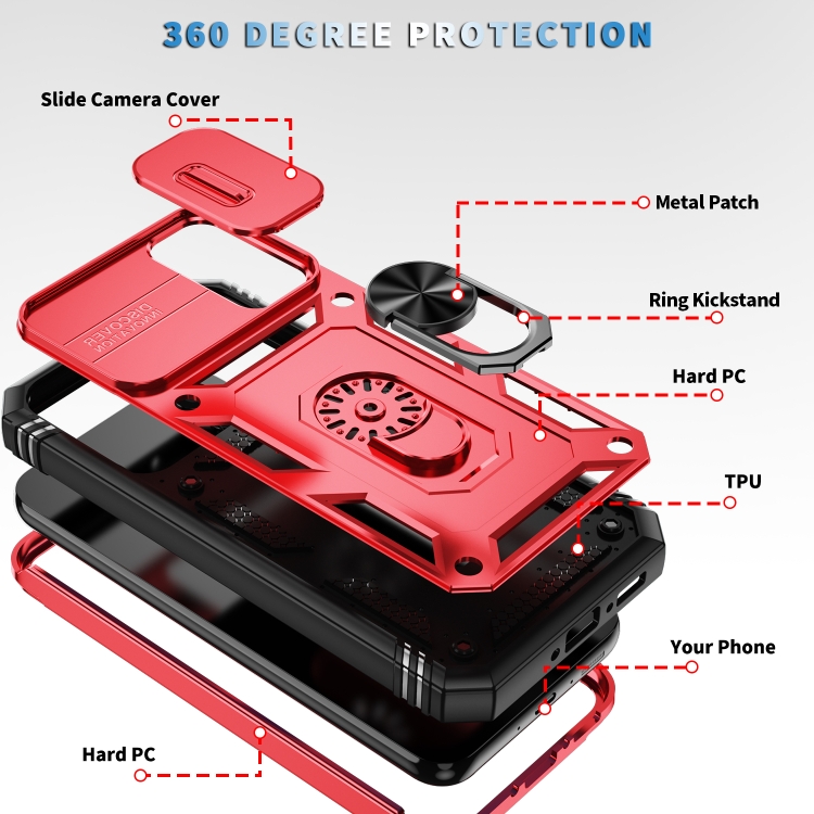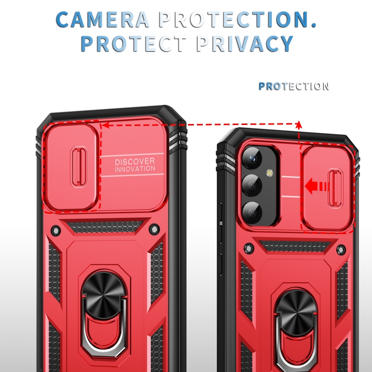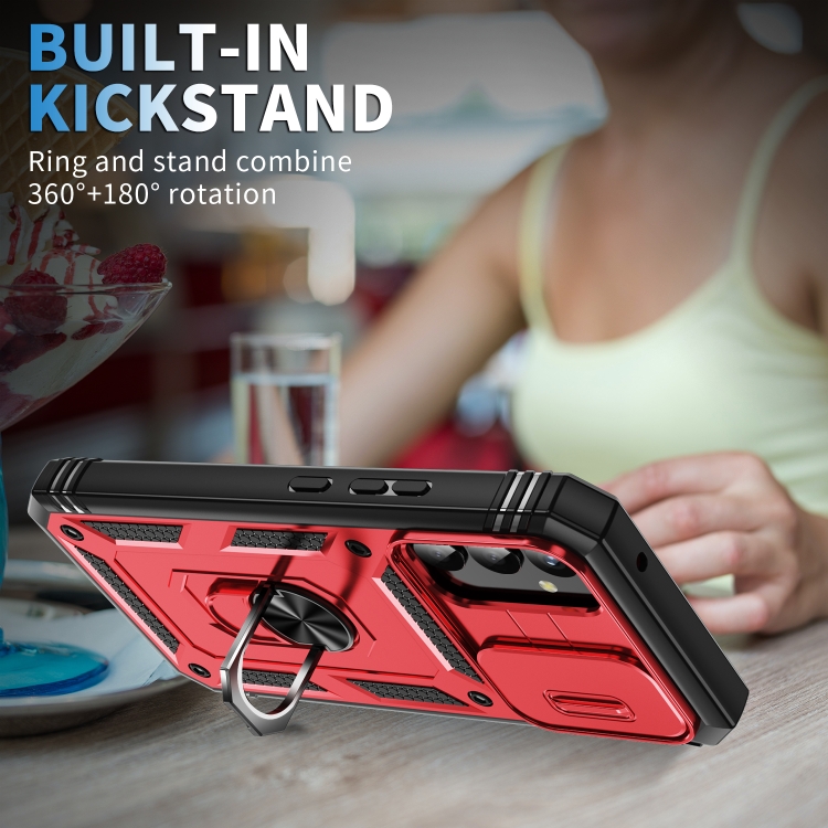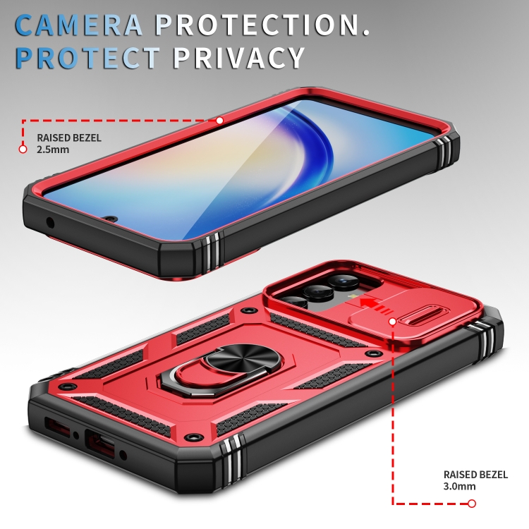 Funda para Samsung Galaxy A34 Sliding Camshield TPU con Soporte PC (Rojo + Negro)