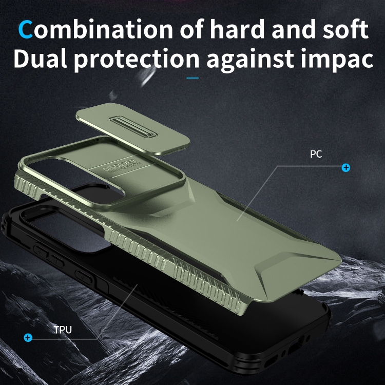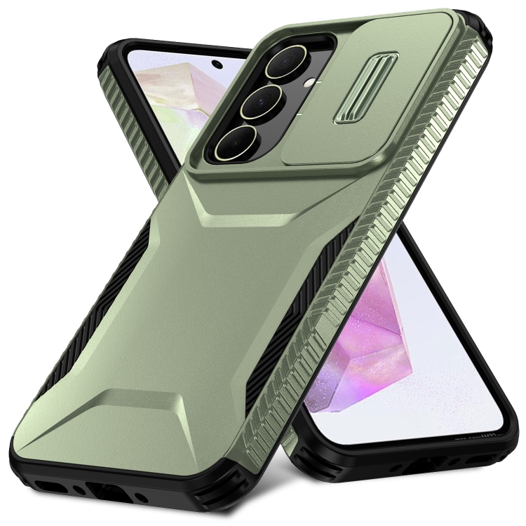 Estuche para teléfono Samsung Galaxy A35 5G con escudo de levas deslizante (Verde Alpino)