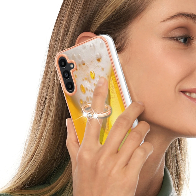 Estuche para Teléfono Samsung Galaxy A35 Imd Doble Cara con Galvanoplastia y Soporte para Anillo (Cerveza de Barril)