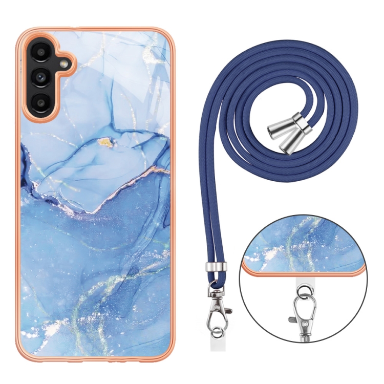 Estuche para Teléfono Samsung Galaxy A35 Imd Doble Cara Mármol Galvanizado con Cordón (Azul)