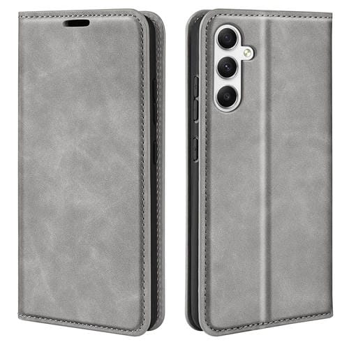 Funda para Samsung Galaxy A35 Cuero Succión Magnética Piel Retro (Gris)