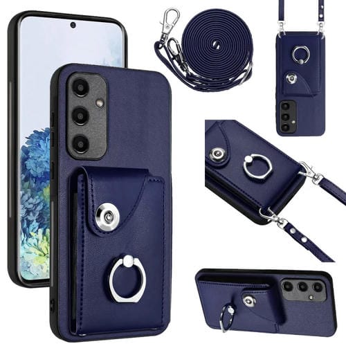 Funda para Teléfono Samsung Galaxy A35 con Soporte para Anillo Bolsa para Tarjeta y Cordón Largo (Azul)