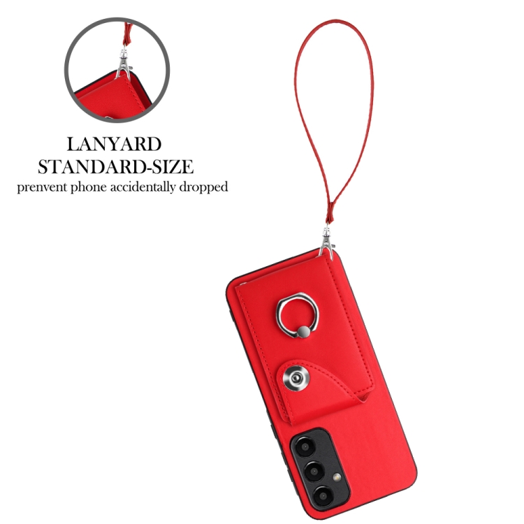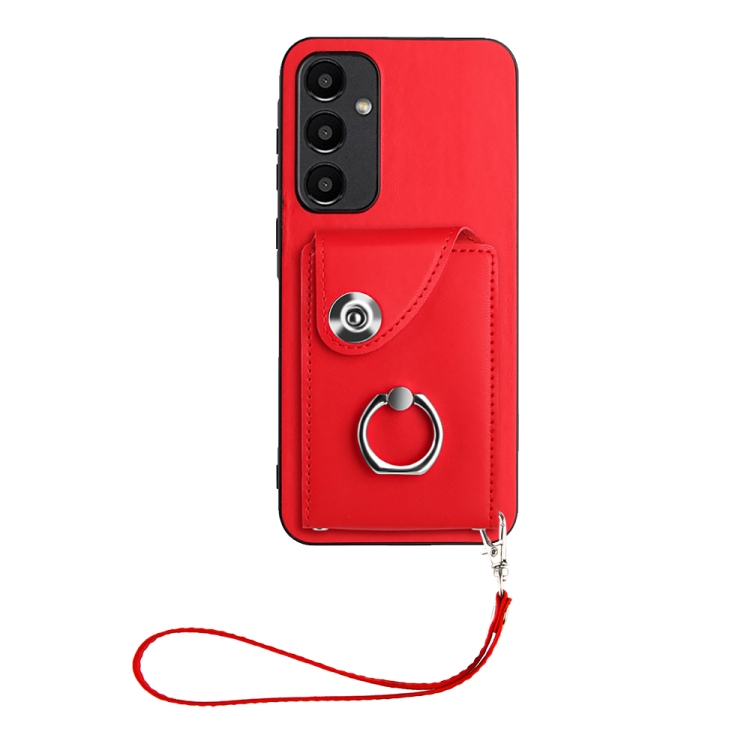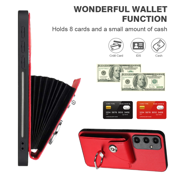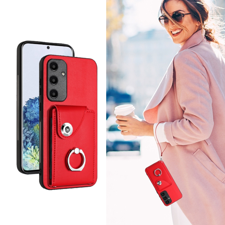 Funda para Teléfono Samsung Galaxy A35 de PU con Soporte para Anillo y Bolsa para Tarjeta con Cordón (Rojo)