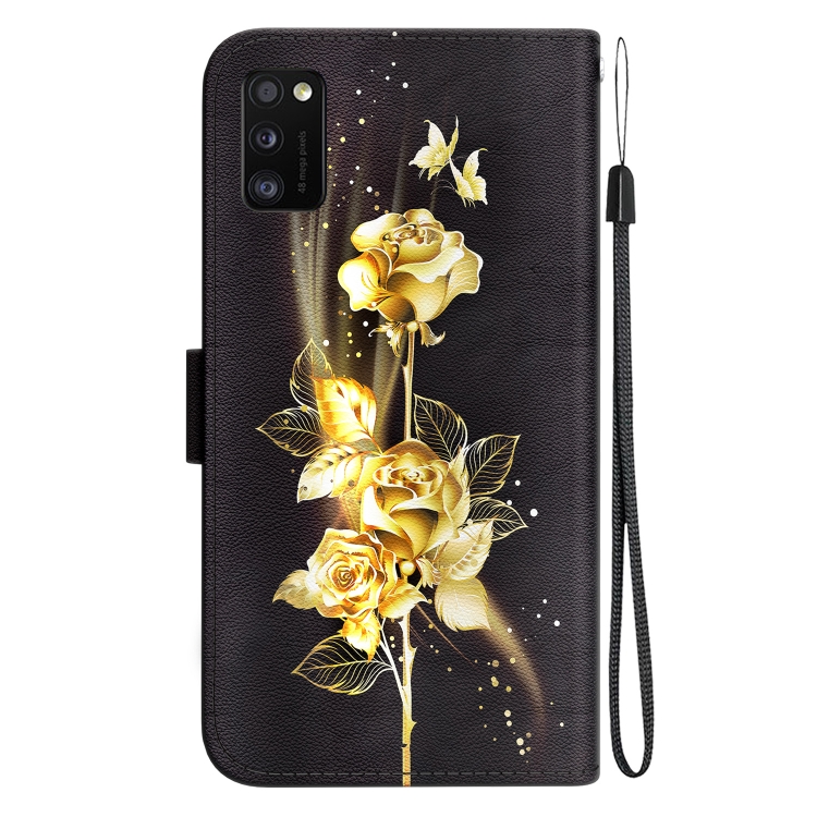 Funda de Cuero Samsung Galaxy A41 Dibujo Coloreado Textura de Cristal (Mariposa Dorada Rosa)