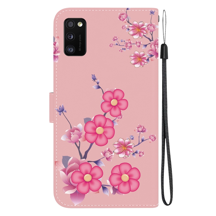 Funda para teléfono Samsung Galaxy A41 Cuero con Dibujo Coloreado y Textura de Cristal (Flores de Cerezo)