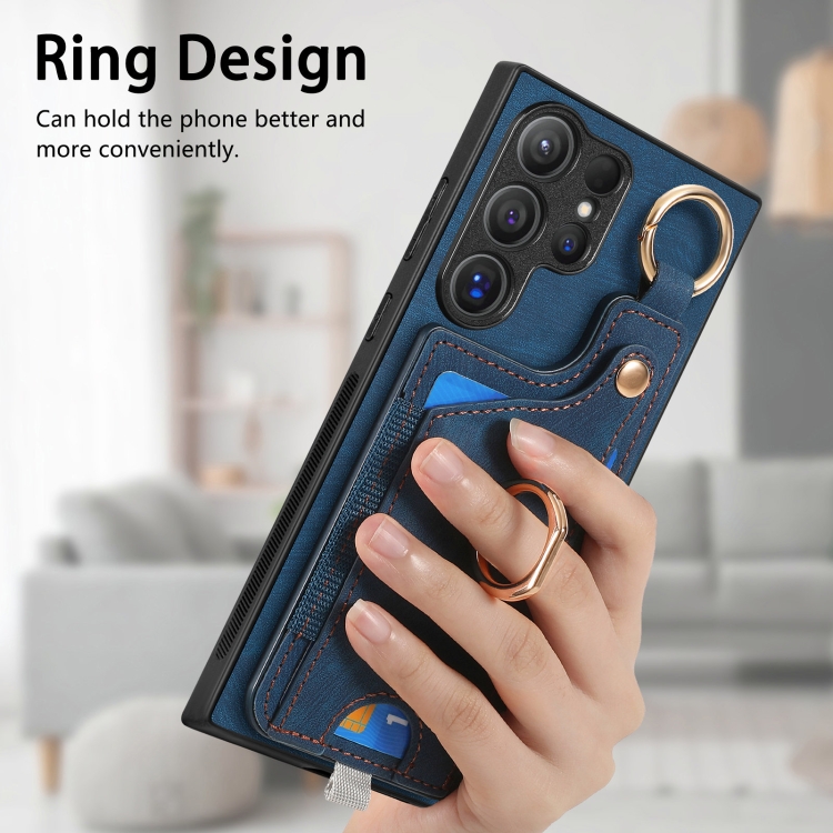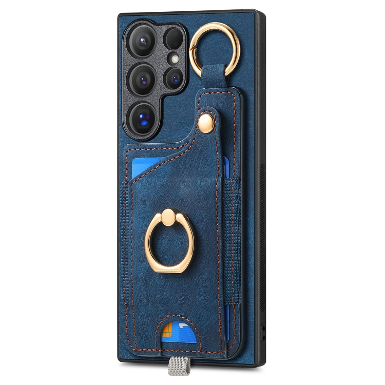 Funda para Teléfono Samsung Galaxy A50 A50S A30S con Bolsa para Tarjeta Anillo y Lazo (Azul)