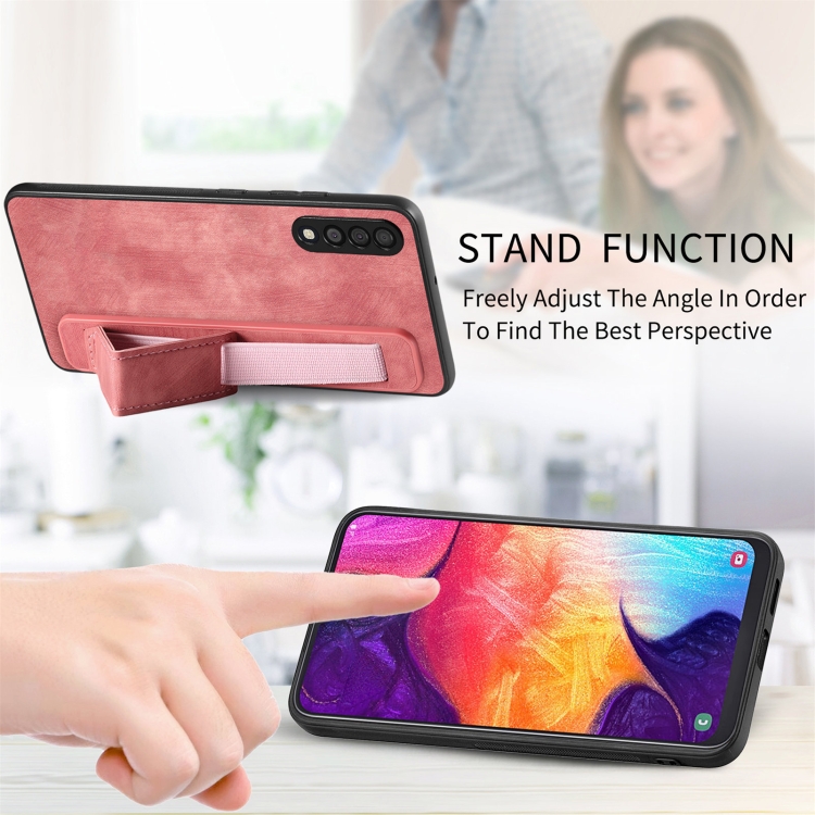 Funda Trasera para Samsung Galaxy A50S Cuero con Soporte para Pulsera (Rosa)