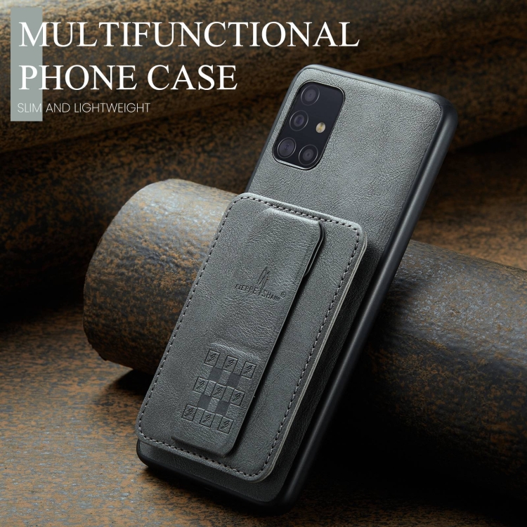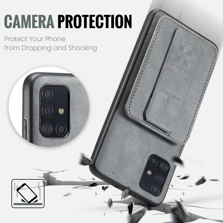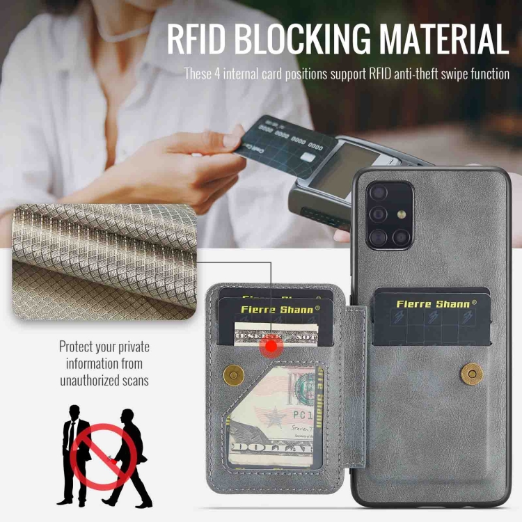 Funda para teléfono Samsung Galaxy A51 4G Fierre Shann Oil Wax con tarjetero de cuero de vaca (Gris)