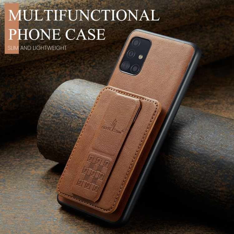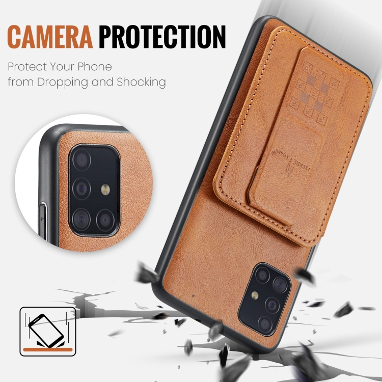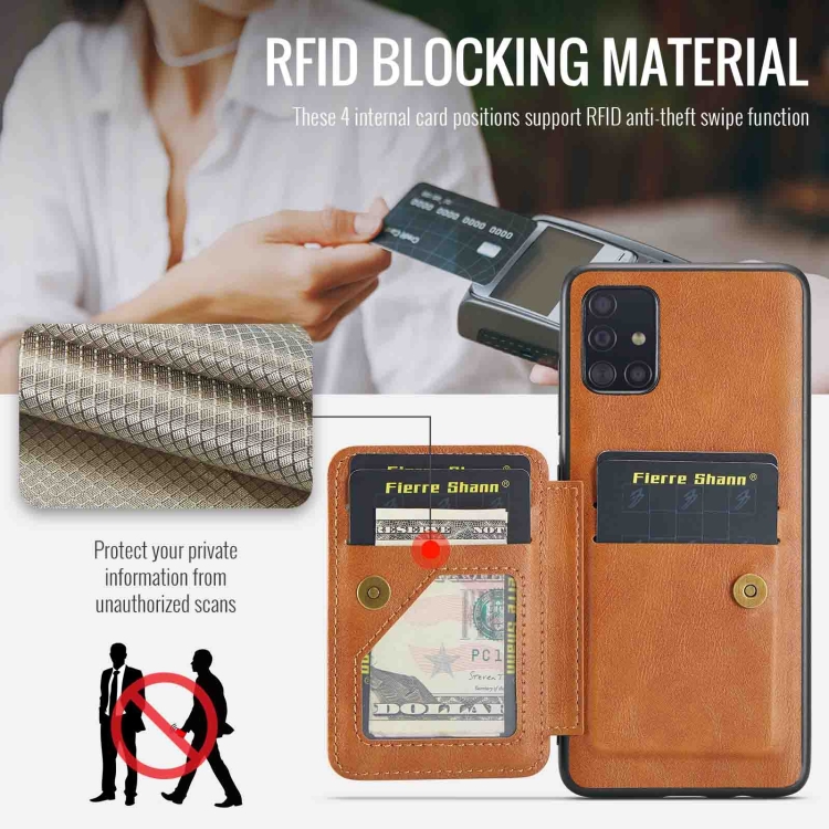 Funda para Teléfono Samsung Galaxy A51 4G Fierre Shann Oil Wax con Tarjetero de Cuero de Vaca (Marrón)