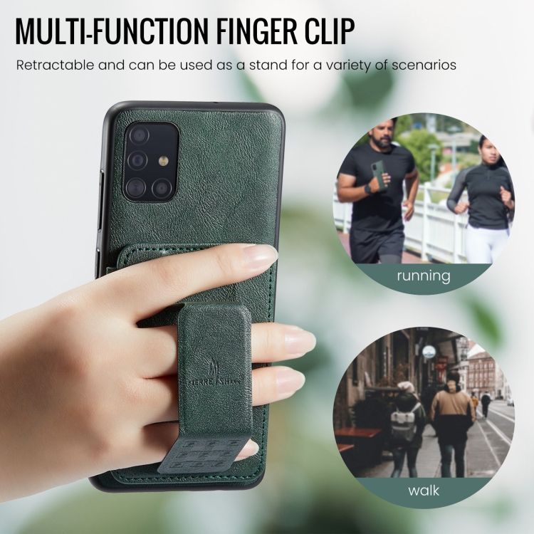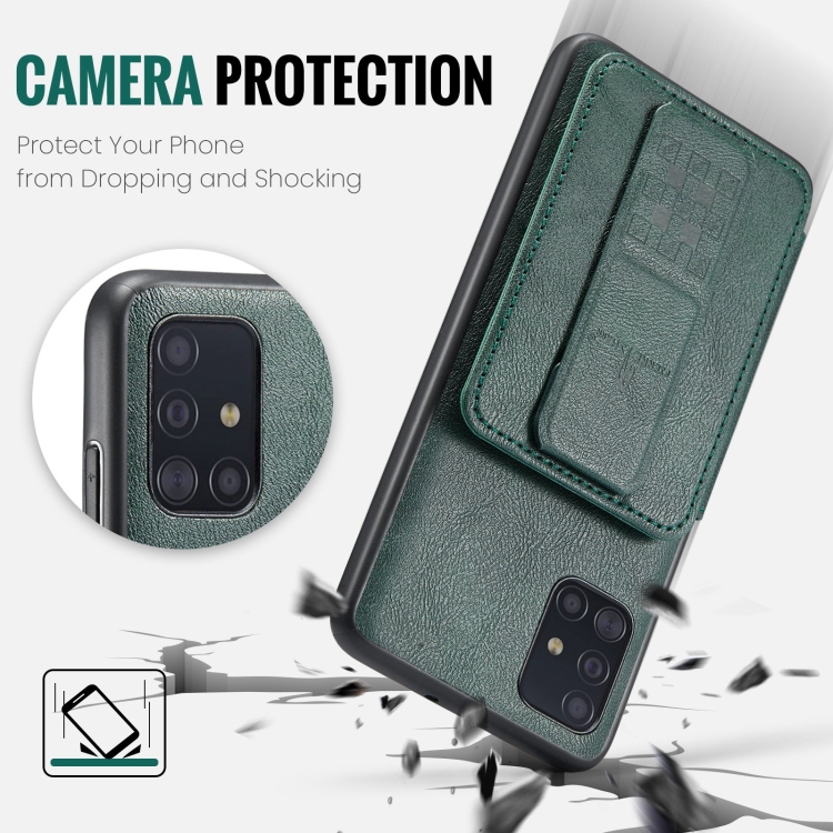 Funda para teléfono Samsung Galaxy A51 4G Fierre Shann Oil Wax con tarjetero de cuero de vaca (Verde)