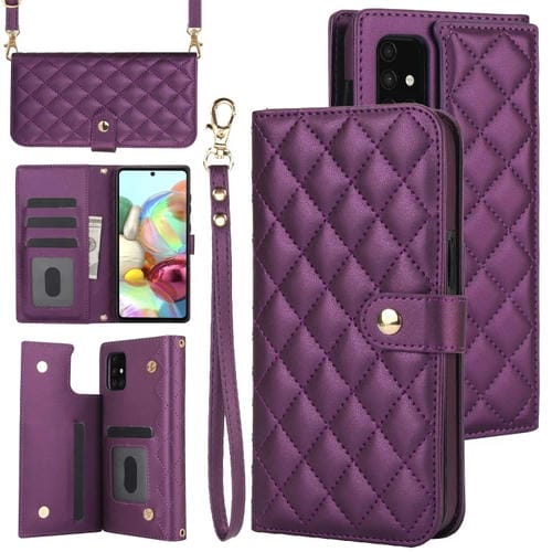 Funda Cruzada de Cuero Samsung Galaxy A51 4G Rómbico Multifunción (Púrpura Oscuro)