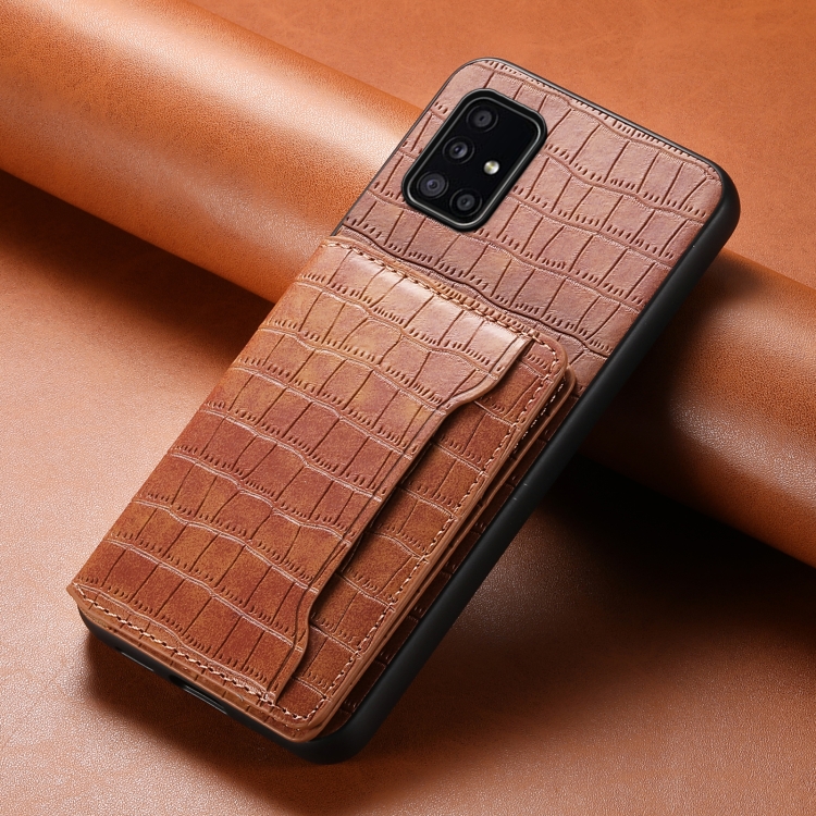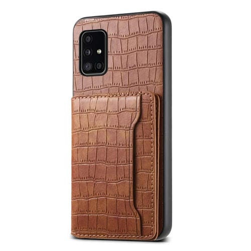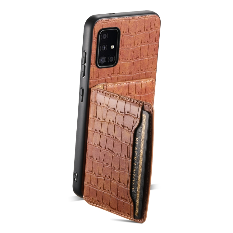 Funda para Teléfono Samsung Galaxy A51 4G con Diseño de Bolsa para Tarjetas y Textura de Cocodrilo (Marrón)