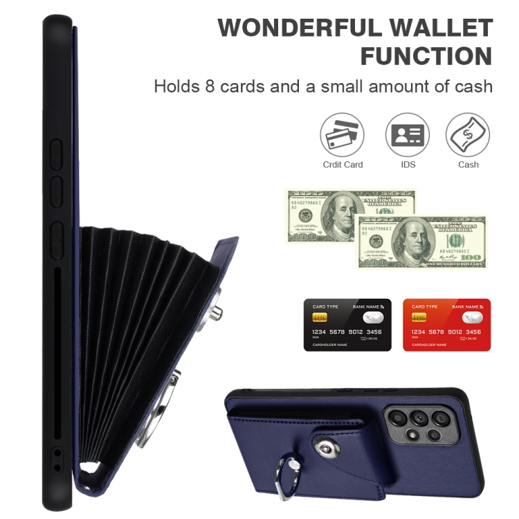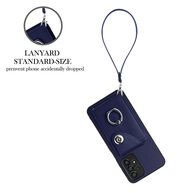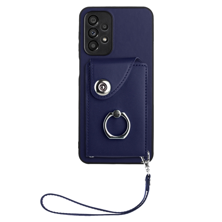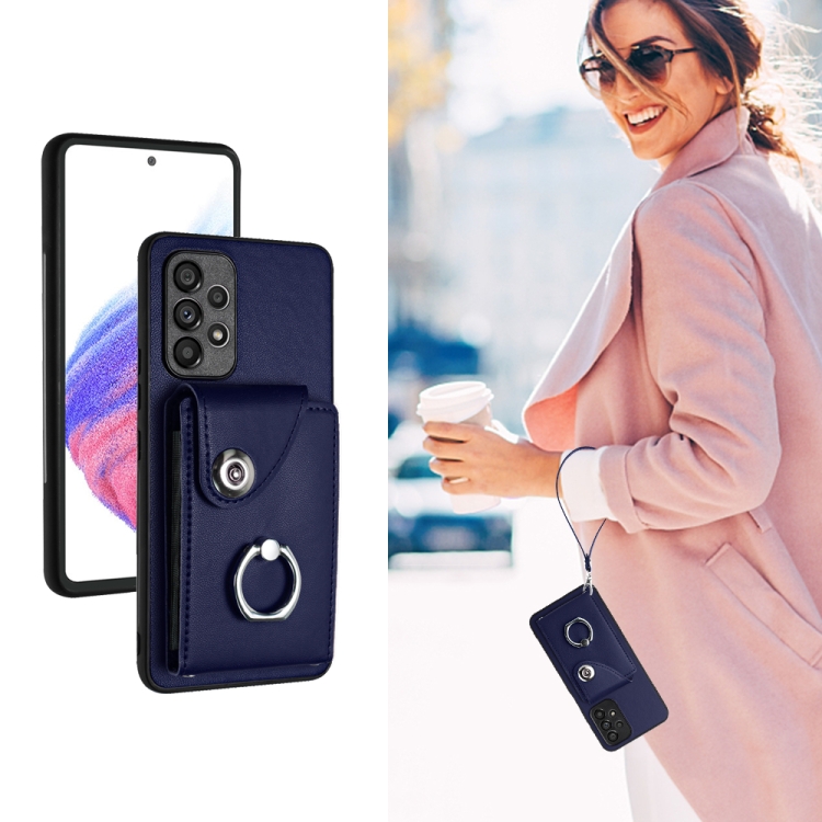 Funda para Teléfono Samsung Galaxy A52 4G y 5G Pu con Soporte para Anillo y Bolsa para Tarjeta con Cordón (Azul)