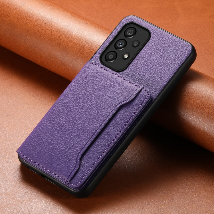 Funda para Teléfono Samsung Galaxy A53 5G Diseño Bolsa para Tarjetas Textura de Becerro (Púrpura)