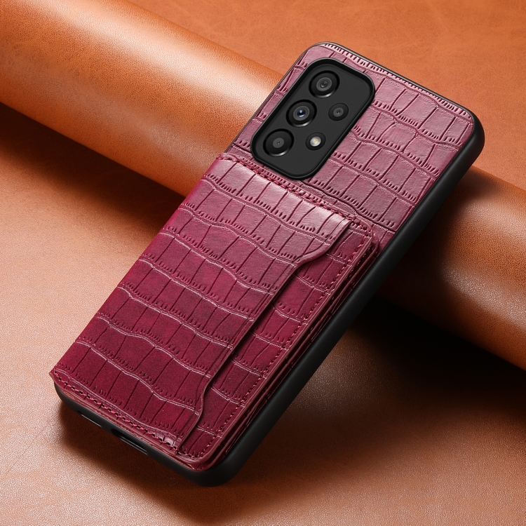 Funda para Teléfono Samsung Galaxy A53 5G Diseño Bolsa para Tarjetas Textura de Cocodrilo (Rojo)