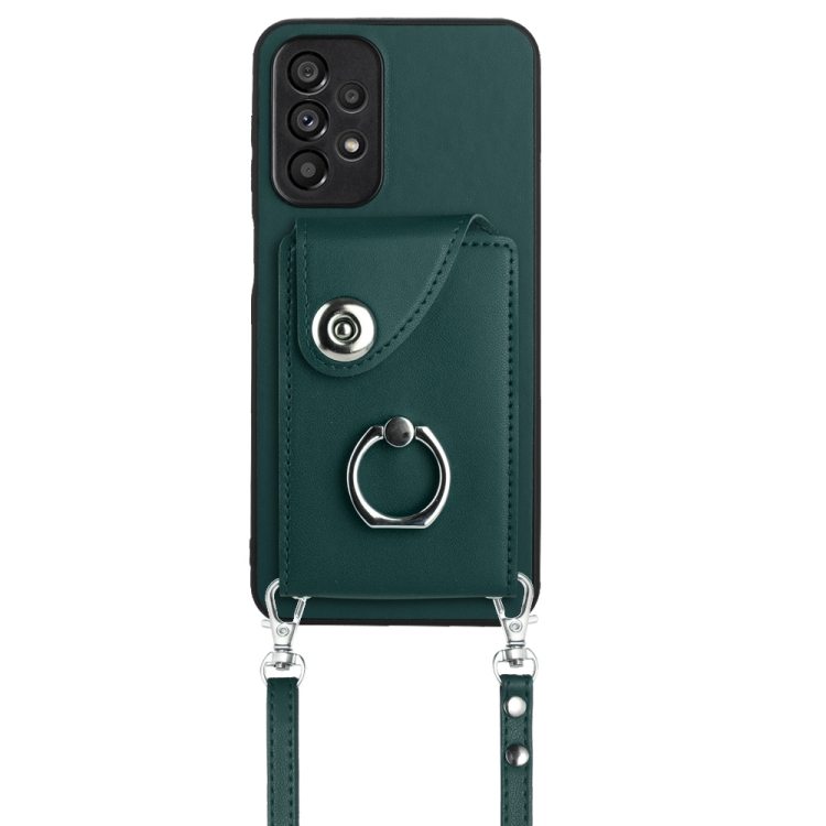 Funda para Teléfono Samsung Galaxy A53 5G con Soporte para Anillo y Bolsa para Tarjeta con Cordón Largo (Verde)