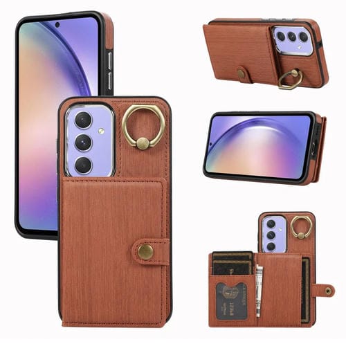 Funda para Teléfono Samsung Galaxy A54 5G con Soporte para Anillo y Billetera con Textura Cepillada (Marrón)